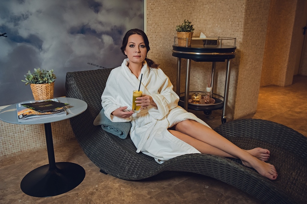 О СПА. Для личного отдыха или командировок я всегда стараюсь подбирать отели со СПА-зонами. Как, вероятно, и любая женщина, я люблю экспериментировать с оздоровительными процедурами в плане всевозможных расслабляющих массажей. Также я всегда обращаю внимание на то, чтобы до или после процедуры была возможность воспользоваться бассейном или баней. СПА-студия в отеле StandArt предлагает гостям аквазону с хаммамом, сауной, обливным душем и купелью. Здесь же к вашим услугам 4 процедурных кабинета, где вы можете сделать массаж и различные ухаживающие процедуры. Услугу массажа, при желании, можно заказать в номер, что очень удобно. При входе в СПА вы сразу обратите внимание на выдержанное в общей стилистике отеля оформление.