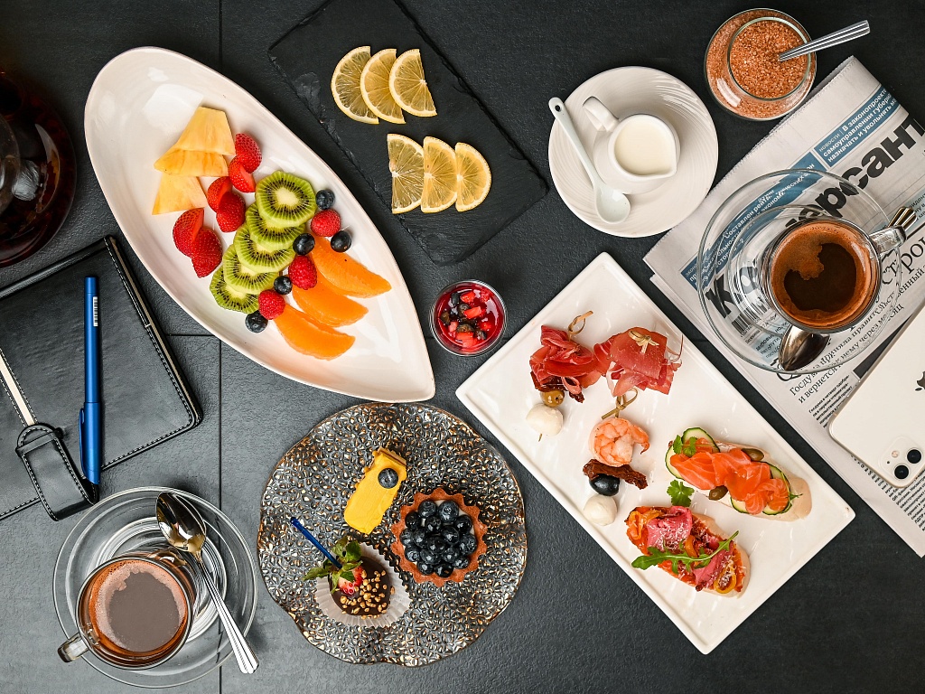 Что удивляет? Разнообразие блюд на шведской линии в основном ресторане. На завтраках - обедах - ужинах есть все, что можно только представить или пожелать. И все невероятно вкусное. А ресторан современной кухни «Гуси-Лебеди» идеально подходит для торжественного события - банкета или фуршета, со сценой и живой музыкой. Его дизайнерский интерьер создает поистине праздничное настроение. Отмечу, что этот ресторан также открыт на завтраки-обеды-ужины, но начинает работать с 11 утра.