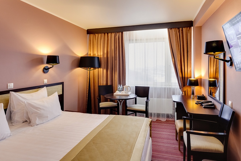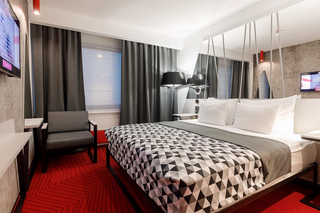 В отеле восемь категорий номеров, они различаются по площади и оформлению. Уверена, что довольны будут гости с самыми разнообразными запросами: в наличии есть стандартные номера (лаконичные, отельная классика); дизайнерские номера «русский делюкс»; яркие, стильные смарты в урбанистическом стиле и в различных конфигурациях, а также номера для самых требовательных клиентов – это комфортабельные и просторные люксы.