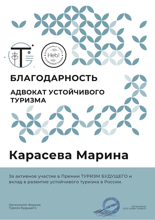 Мы рады сообщить, что главный редактор Марина Карасева входит в Жюри Премии, а также - по итогам 2025 года - получила звание "Адвокат устойчивого туризма".