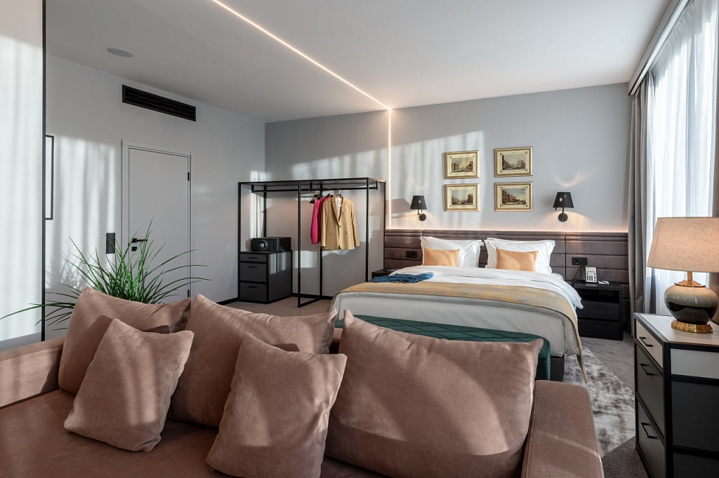 Domina Пулково предлагает своим гостям разнообразие номеров и апартаментов, каждый из которых выполнен в индивидуальном дизайнерском стиле, отражающем гармонию итальянской эстетики и скандинавской сдержанности, присущей Северной столице.