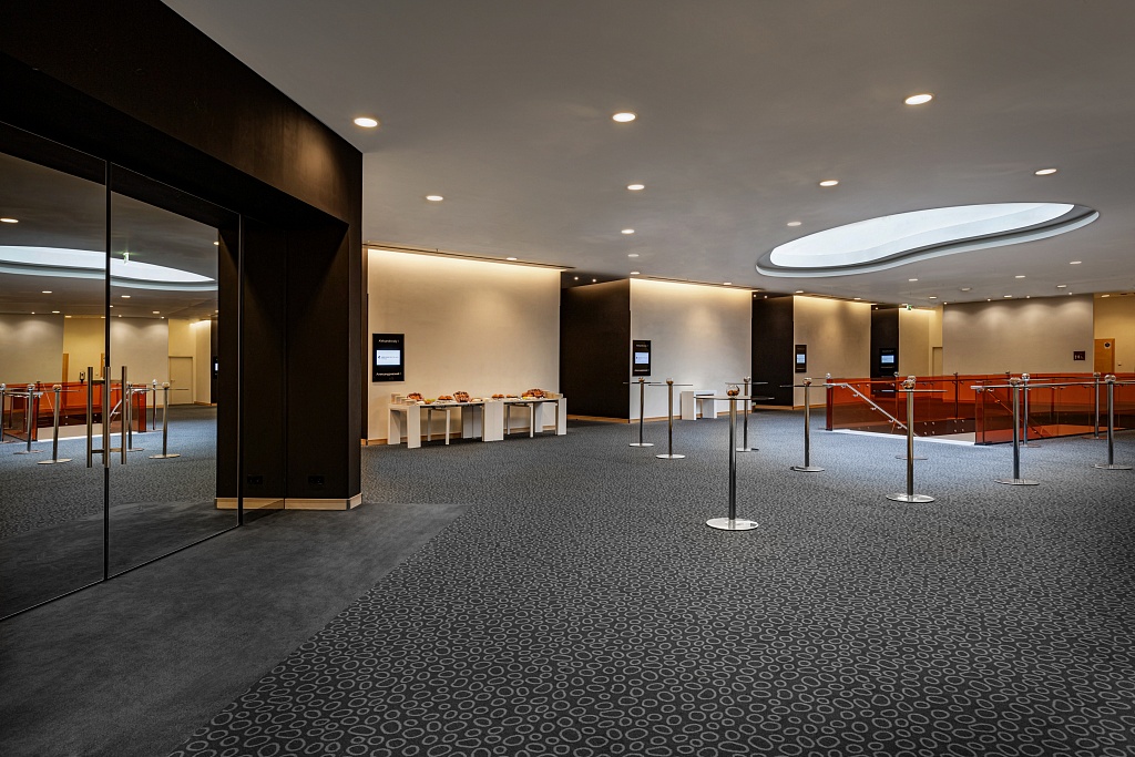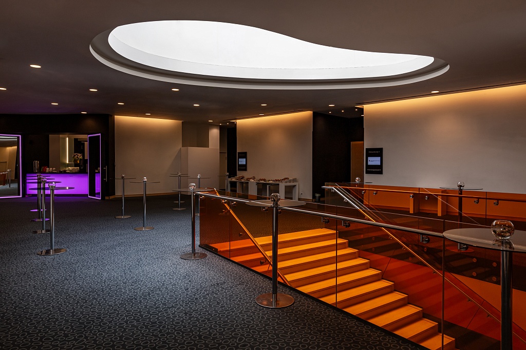 • большая функциональная зона конференц-фойе – возможность застройки пространства под выставку, руководствуясь ТЗ и пожеланиями заказчика;
