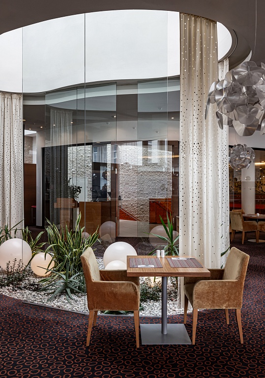 • во всех залах естественное освещение с возможностью применения блэкаут штор;