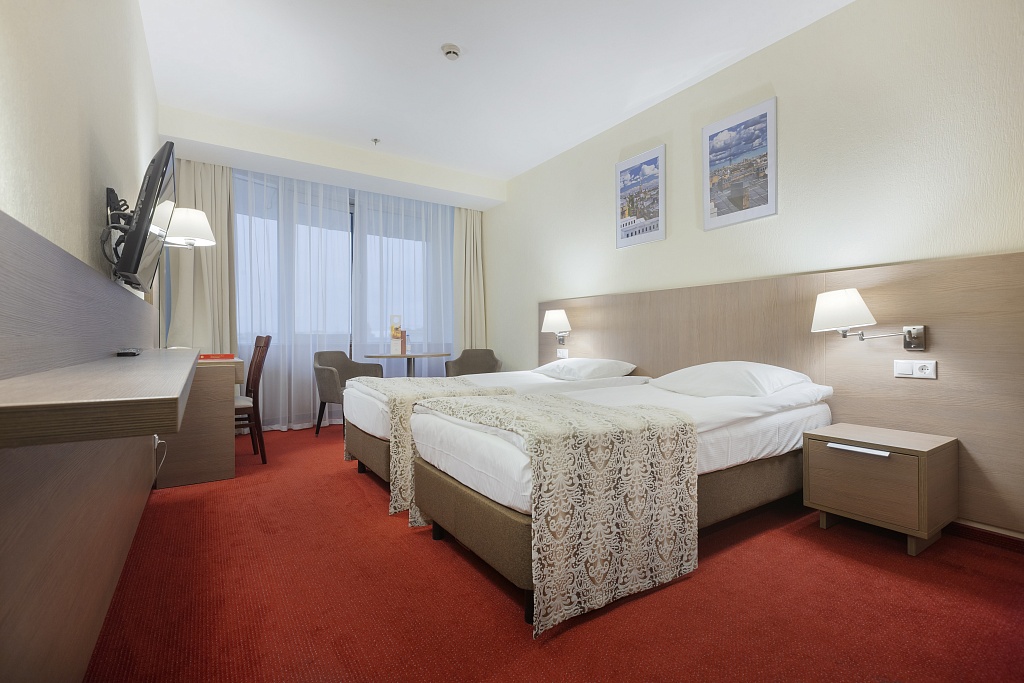 В отеле — 251 номер разной категории: от Стандартов до Президентского номера с эксклюзивными интерьерами и панорамным видом на город, чтобы гости смогли почувствовать императорскую роскошь города на Неве. Интерьеры номеров выполнены в классическом стиле — это тёплые оттенки, благородные материалы и продуманная эргономика. В таких номерах удобно работать, приятно отдыхать и легко влюбляться в Петербург.