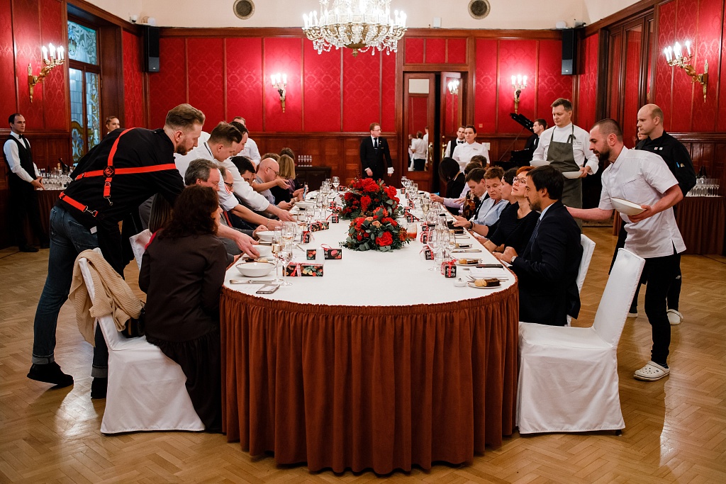 Благодаря этим «мелочам», а также особой камерной обстановке ужин из экзаменационного, отчетного, превратился в уникальное для всей сети событие, своего рода гастрономический спектакль для всех его участников. Эксклюзивная презентация каждого блюда шеф-поварами сопровождалась детальным рассказом о технике его приготовления, так что даже неискушенные в теме гастрономии гости весьма расширили свой кулинарный кругозор. Результаты обучения на интенсиве были зафиксированы в специальных дипломах и форменных нашивках, их торжественно вручили каждому участнику.