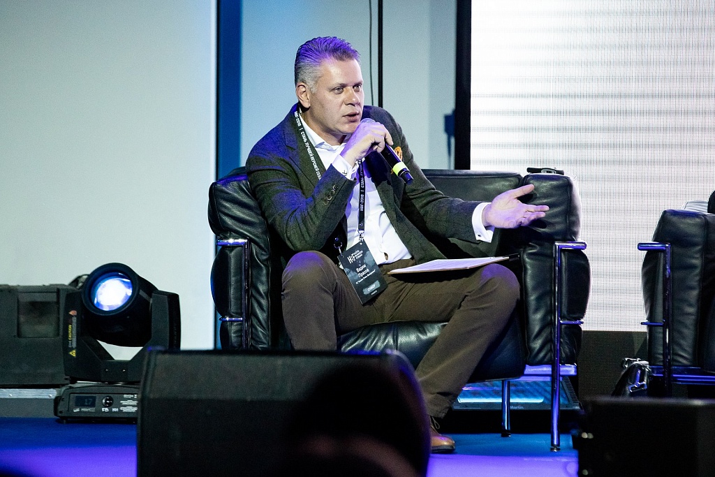 5. Интервью — в этой форме работали хедлайнеры с аудиторией и представляли свою историю успеха, в ходе традиционного голосования лучшим спикером стал Владимир Седов, СЕО ГК «Аскона» и города Доброград.