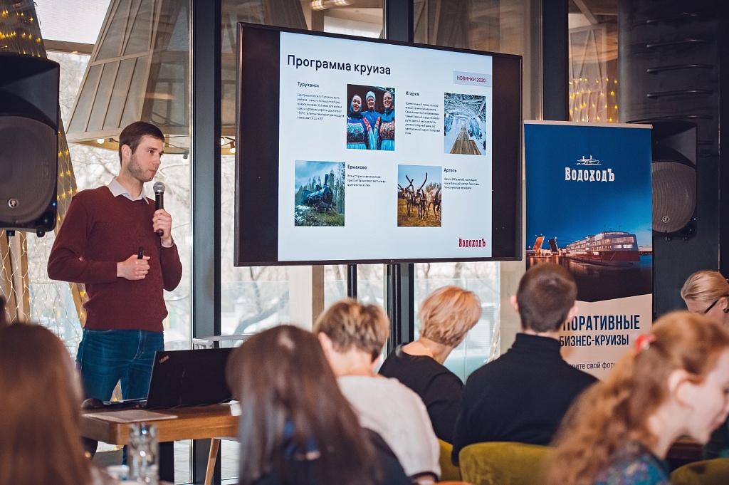 Александр Котенко, руководитель по работе с корпоративными клиентами компании «ВодоходЪ», в своей презентации «От Волги до Енисея» познакомил гостей бизнес-завтрака с особенностями направлений речных круизов и тонкостями их выбора, дал характеристики кораблей и маршрутов, познакомил с деталями бронирования для групп, а главный акцент сделал на новом продукте – на премиальных круизах компании «Водоходъ». Аналогов им на российском рынке нет: путешественников принимают на борт новейший пятизвездочный теплоход «Мустай Карим» и полностью реновированный теплоход «Максим Горький», который будет открывать пассажирам изумительные красоты Сибири.