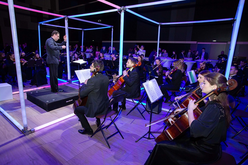 Гости насладились живой музыкой на иммерсивном концерте симфонического оркестра Ленинградской области «Таврический». Приятным сюрпризом стало исполнение оркестром композиции «Приношение Экспофоруму», написанной композитором Муратом Кабардоковым специально к юбилею.