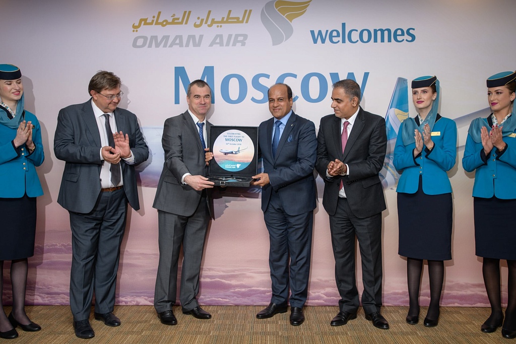 На борту первого рейса в Москву прибыла официальная делегация в лице генерального директора Oman Air Абдулазиза Аль-Раизи, коммерческого директора Пола Старрса и других представителей высшего руководства авиакомпании, а также чрезвычайного и полномочного посла Российской Федерации в Омане Дмитрия Догадкина. В Домодедово представителей Oman Air встречали российские официальные лица.
