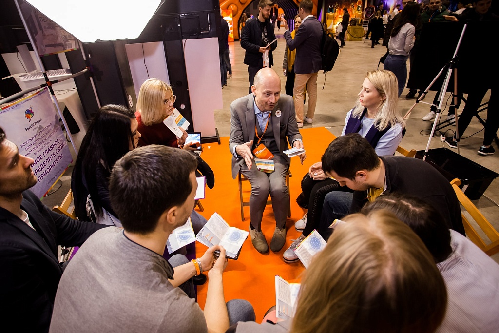 В тренингах топовых представителей ивент-индустрии и ведущих тимбилдеров страны с интересом участвовали все гости. Этот open-space с большими экранами, расположенный на втором этаже выставочной площадки, не пустовал ни минуты!