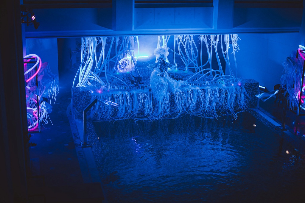 Далее в атмосферу фантазий и сказочного сна гостей завлекали русалки — верные спутники морских легенд. Поселившиеся в бассейне, обнаженные, украшенные лишь сияющей чешуей, они окончательно стерли грани во времени и пространстве, подготовив почву для пяти десятков перформансов от режиссеров Юрия Квятковского, Ильи Мусатова, Павла Чукреева, Юлии Гоманюк, Лизы Владимировой, Виктории Петренко, Александра Плотникова.