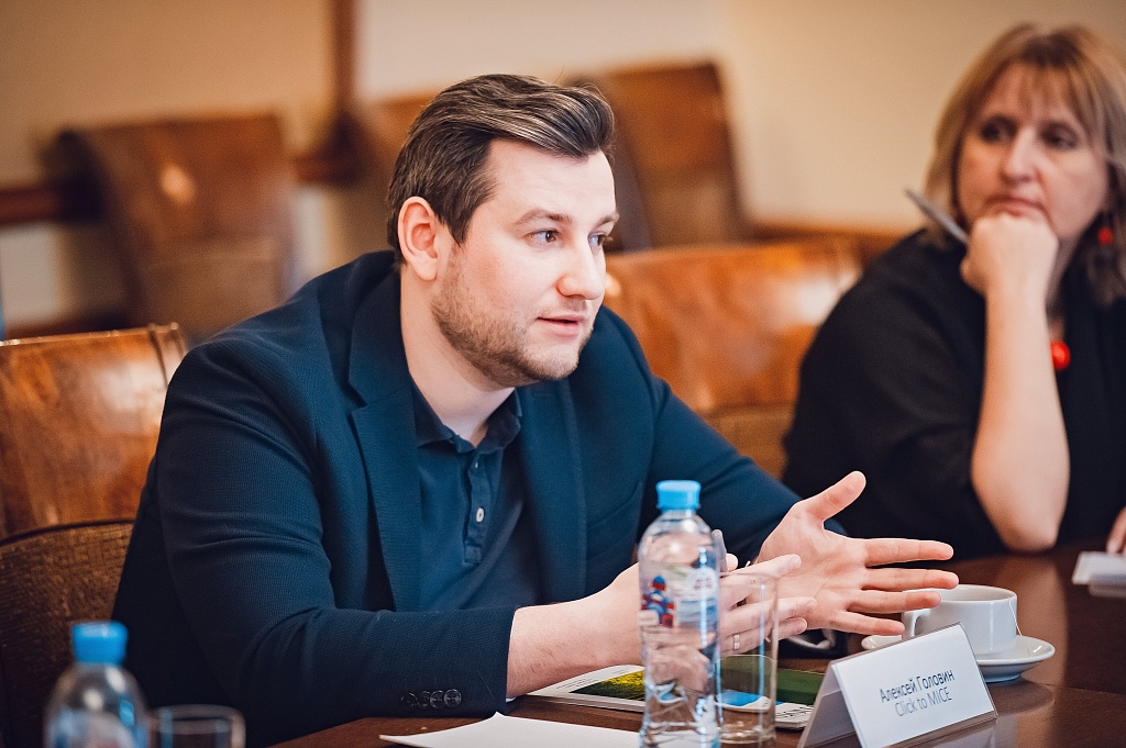 AЛЕКСЕЙ ГОЛОВИН (Click to MICE). Мы занимаемся организацией мероприятий для корпоративных клиентов, нашими клиентами являются агентства и непосредственно заказчики. Мы объединяем поставщиков офлайн, то есть отели, рестораны и так далее, загружаем их на нашу платформу со всем контентом, и с помощью этого сервиса наши клиенты бронируют свои мероприятия и проводят оплату буквально в несколько кликов. В основном мы работаем на небольших типовых мероприятиях, на круглых столах, и 95% наших клиентов это фармбизнес.