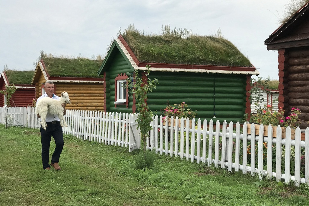 70 гектаров ухоженной земли на живописном берегу Камы, пара десятков деревянных хоббичьих домиков: с крышами, покрытыми зеленым дёрном, с отоплением, водопроводом, освещением, телевизором. Здесь же фруктовые плантации с абрикосами, грушами, виноградом, яблонями, парк с кедрами, сиреневый сад с самой большой коллекцией сортов этого кустарника, дороги, отсыпанные гравием, банный комплекс, автокемпинг, летняя кухня, танцплощадка, сеновал в виде двухпалубного корабля с прозрачной крышей – лежи нога-на-ногу и балдей под небом… Здесь же лодки, велосипеды, квадроциклы, лошади, рыбалка, парк водных растений, детский сад, музей сельскохозяйственной техники, мелкие дикие животные под ногами (в том числе ужи), многочисленные пернатые водоплавающие (в озёрах и старицах), рыба на любой вкус и способ ловли.