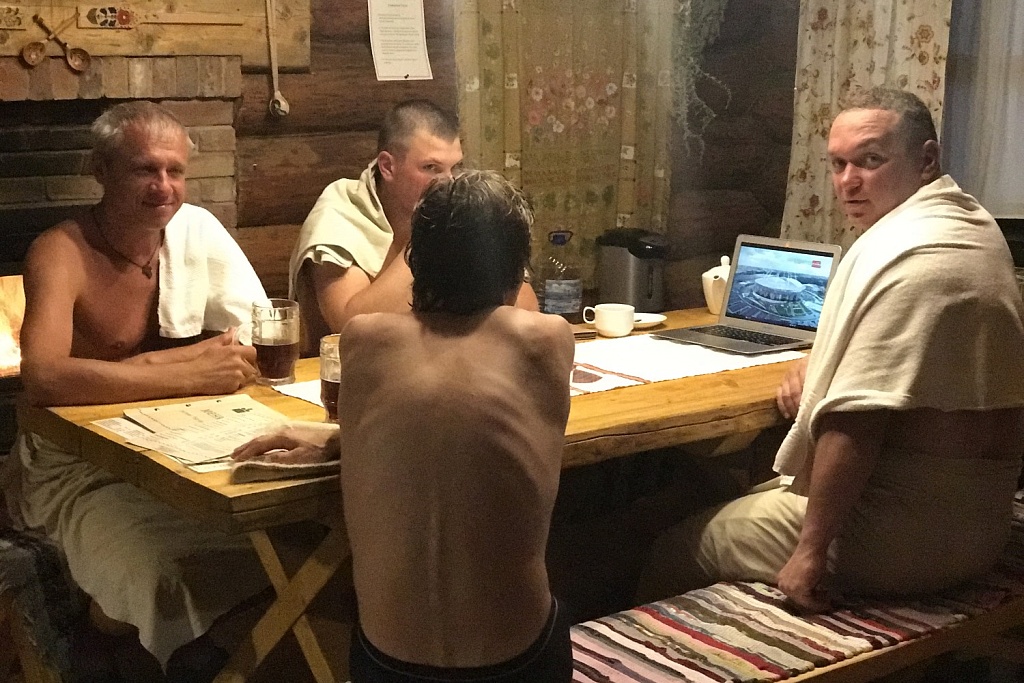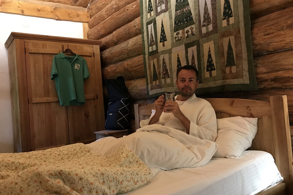 Преодолев во время экспедиции за первые три дня 1500 км по дорогам и не дорогам России на УАЗе, я оказался в условиях, приближенных к сказочной жизни, – в гостевом доме, где, под стук дождя по окну, в лобби уютно потрескивал камин, а в номере, приняв горячий душ, я облачился в белый халат и тапочки.