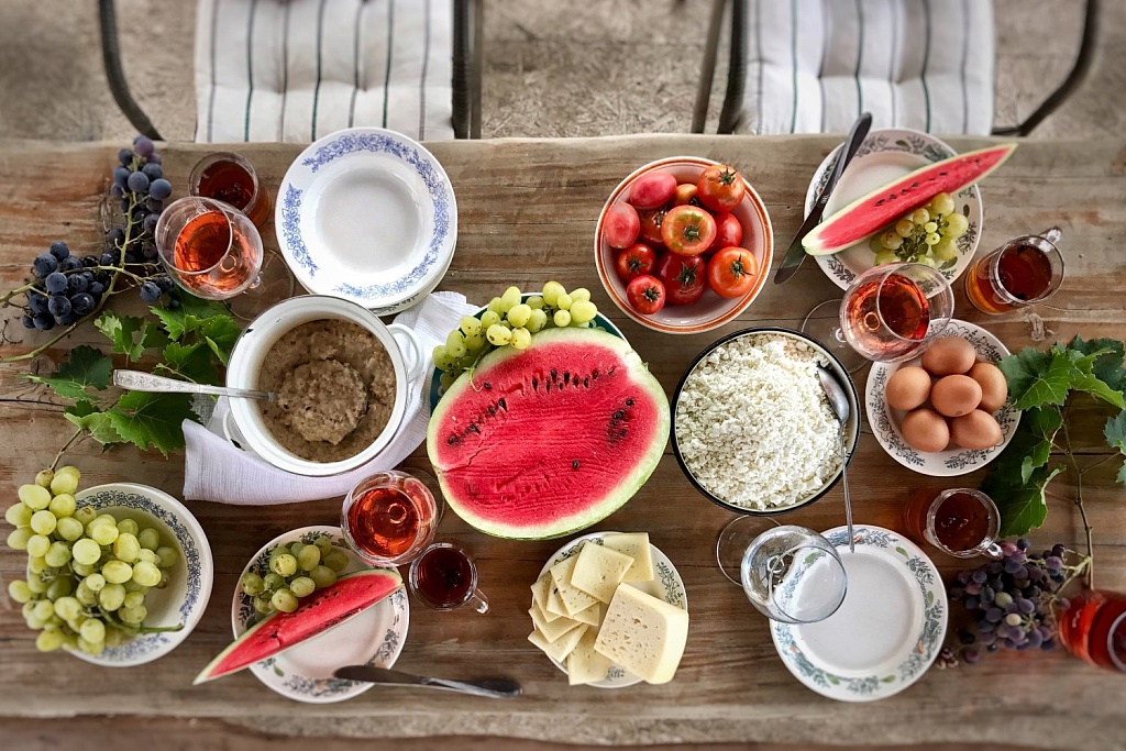 Сладкий арбуз плюс холодное розе равно эногастрономический завтрак в 23-м регионе. Потом было поедание винограда с кистей прямо на виноградниках, гастрономический выдох на берегу Чёрного моря, с вином, вяленым лещом и семечками – дарами Ростова, экспедиционные летние вечера в винодельческом хозяйстве «Кантина». Вы не забыли – мы работаем в любых условиях в рамках летней экспедиции федерального проекта.