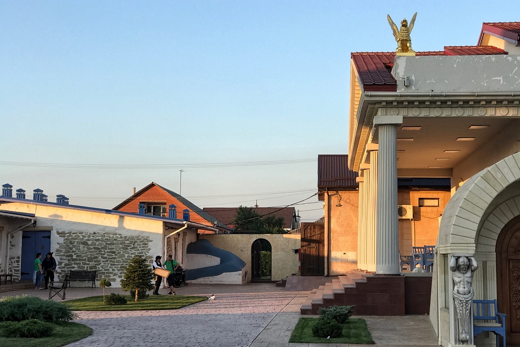 Это винодельня. Находится в 20 км от Чёрного моря, близ деревушки Гай-Кадзор в окрестностях Анапы, среди живописных холмов и, понятно, виноградников. Называется почему-то «Кантина», делают несколько чудесных вин. Я забалдел от розового. А вообще, есть дегустационный зал, несколько домиков, где с комфортом можно остановиться, беседки, мангалы, бассейн, а главное – невероятный простор, волнующий, особенно в предзакатные часы, с продолжительным приятным послевкусием. Вечер здесь наполнен легкими нотами полевых трав, нежными нюансами жатого винограда и цветущей розы. Такой сбалансированный, гармоничный, с прекрасным соотношением свежести и округлости августовский вечер в двух шагах от моря.