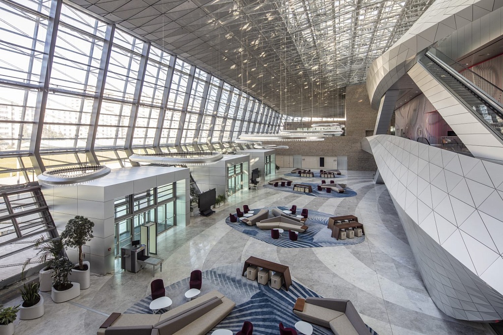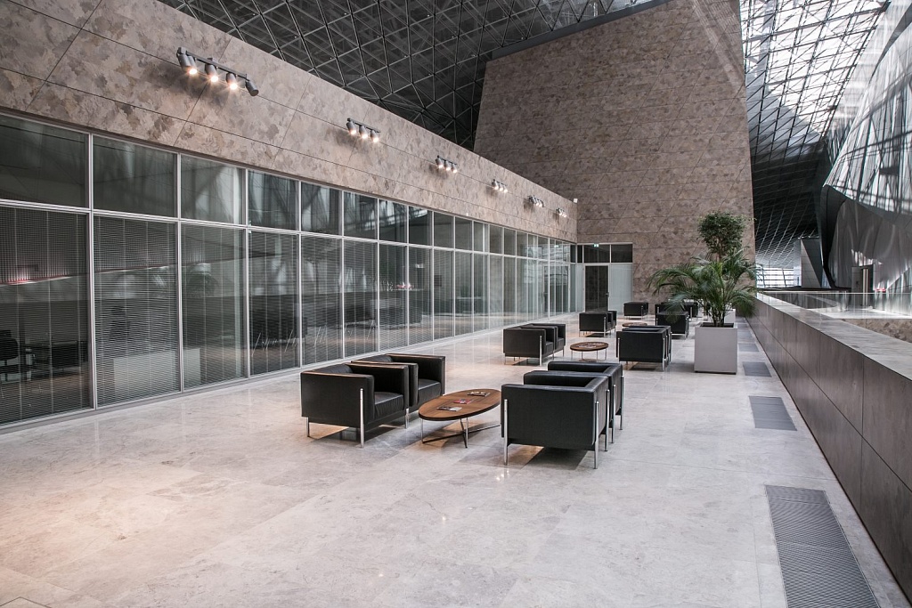 Назрин Шамхалова. Здание Конгресс-центра абсолютно диджитализировано. Это заметно, что называется, с порога: уже на входе вас встречает один из самых крупных мониторов мира в крытом помещении. Он имеет площадь в 405 квадратных метров и разрешение 4К. Кроме того, у нас около пятидесяти мониторов разных размеров, которые мы предоставляем организаторам мероприятий абсолютно бесплатно и таким образом поддерживаем green policy, минимизируя использование печатных материалов.