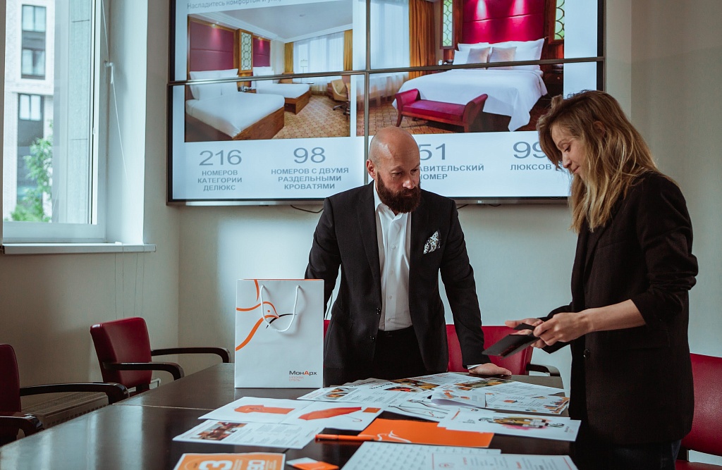 МИХАИЛ ВЕРИЧЕВ. Чтобы сохранить историю бренда «Ренессанс Монарх» и обеспечить преемственность в восприятии потребителей, мы оставили оранжевый цвет основным коммуникационным. Сделав на нем акцент и в согласии с актуальным брендбуком, мы сейчас обновляем все материалы. Прежде всего, это касается внешней атрибутики, униформы, навигации и так далее. Однако для более масштабной реновации требуется время, поскольку приходится искать новых поставщиков на внутреннем рынке или в дружественных странах. То есть обновление пока идет локально; например, мы закупаем более качественную косметику, более комфортные халаты и мягкие тапочки, во все номера высокой категории поставили кофе-машины.