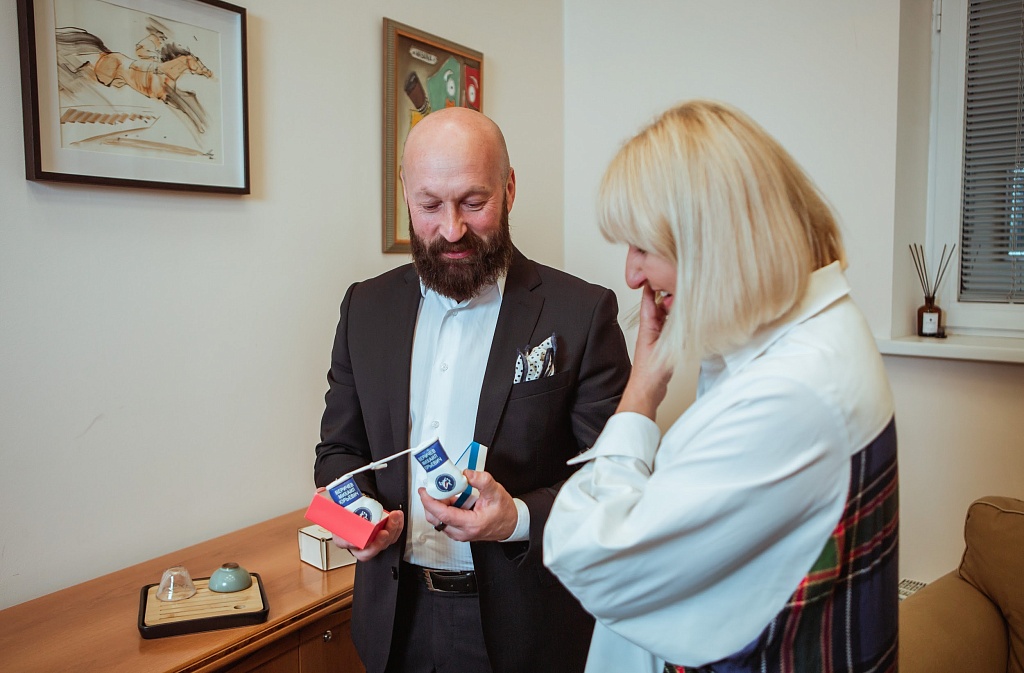После легкого завтрака в гостиной мы спускаемся в лифте на первый этаж к стойке ресепшена, за ней начинается закрытая для гостей зона, где расположен личный кабинет и переговорная комната Михаила Веричева. Наступает время совещаний. Сначала ежедневная встреча с операционным директором Екатериной Кирковой, а затем с руководителем по маркетингу и рекламе Яной Лейченок. Мы стараемся не мешать процессу, а по окончании задаем несколько вопросов.