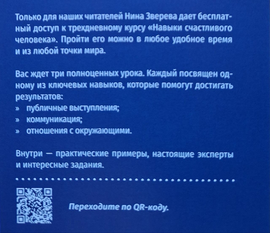 Только для наших читателей Нина Зверева дает бесплатный доступ к трехдневному курсу «Навыки счастливого человека». Пройти его можно в любое удобное время и из любой точки мира.