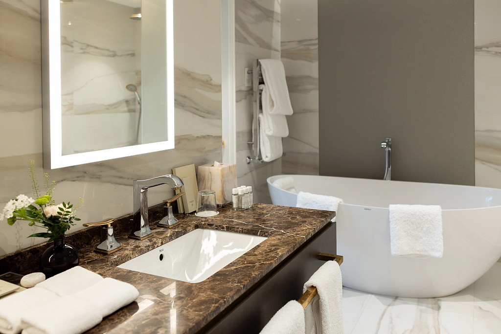 Итак, в этот день нам удалось побывать в офисе генерального менеджера, где шел разговор о стратегических планах отеля. Познакомиться с двумя авторскими люксами и роскошными атрибутами, которые их наполняют. За обедом в ресторане «Империал» мы побывали на презентации нового меню и выборе новой посуды для подачи.