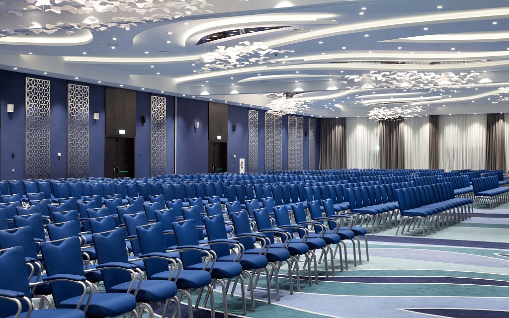 Если говорить конкретно с точки зрения MICE, наш отель обладает большими возможностями и может принять до 1200 человек. В отеле есть просторный зал-трансформер, который при необходимости делится на три части. Также мы предлагаем гостям переговорные комнаты для небольших конференций и совещаний. Лобби конференц-залов располагает террасой с отличным видом. Во время кофе-брейка гости могут здесь прогуляться, подышать свежим воздухом, а в фойе мы организовали… интерактивное гольф-поле для разминки.
