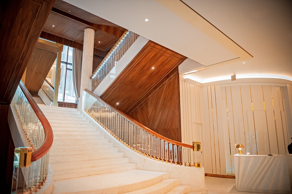ТОМАС ЛОНГА. Я вижу уникальность в двух аспектах. Первый, это интерьеры в стиле ар-деко, который отражен в каждой детали нашего уникального дизайна. Будь то мебель, мраморная лестница, лепнина или элегантные аксессуары. Отмечу и наш флагманский банкетный зал Imperial Plaza (800 кв. м). Представьте роскошное пространство без каких-либо ограничений: нет колонн, а высокие потолки, увенчанные великолепными хрустальными люстрами, уходят ввысь. Да, еще и шестиметровые окна заливают помещение дневным светом. Аналогов такому залу в столичных гостиницах нет.
