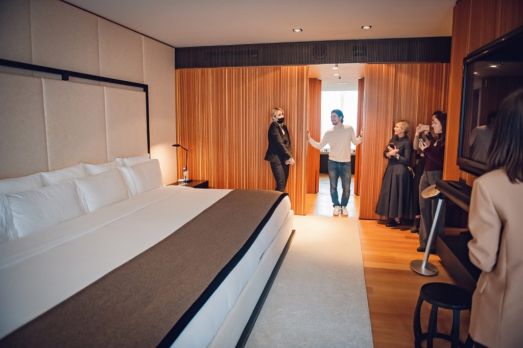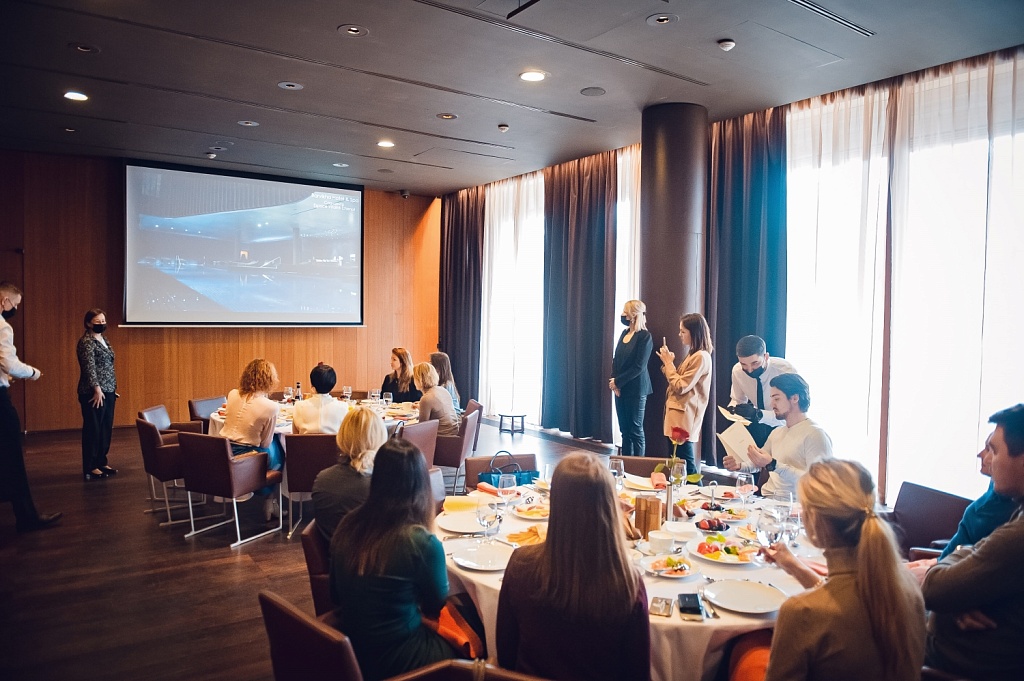 Наш бизнес-завтрак проходил в зале Chopard, его площадь 162 кв. м, и он великолепно подойдёт для камерного мероприятия, будь то праздничный банкет или бизнес-встреча. Участники завтрака отметили лаконичность и продуманность интерьеров. Они выполнены с большим вкусом и в то же время создадут нейтральный фон для декоративного оформления разноплановых событий. Особое внимание обратило на себя освещение: панорамные окна служат не только украшением, но и щедро наполняют пространство естественным светом. Всё это – заслуга известного итальянского архитектора Антонио Читтерио. От его профессионального взгляда не ускользнула ни одна деталь: он досконально продумал дизайн вплоть до того, что полностью спроектировал всю мебель, которая была произведена B&B. Простор, обилие света, благородная палитра красок, отделка из натурального камня и ценных пород дерева – именно так, по мнению Читтерио, выглядит настоящая роскошь, и с ним трудно не согласиться. Ещё один важный аспект – грамотная организация пространства. Даже при высокой загрузке отеля, вы ее не почувствуете, и это тот стандарт комфорта, который гарантирует гостям премиальный бутик-отель.