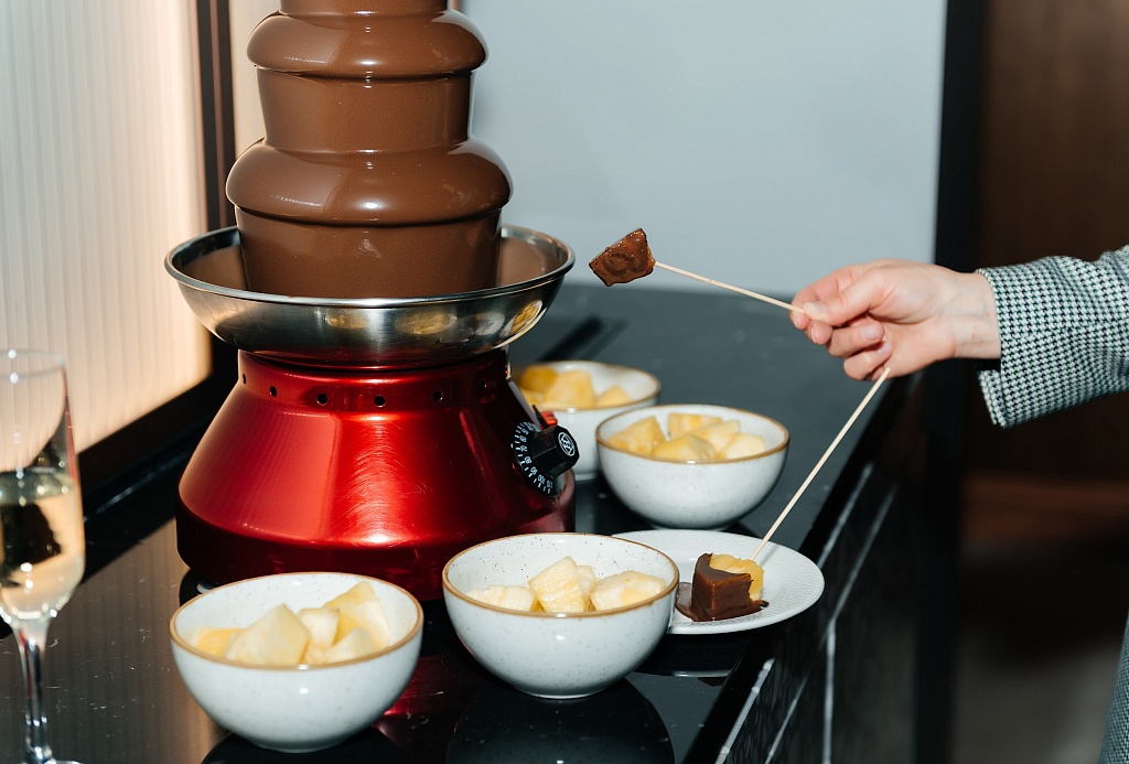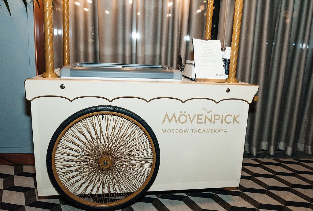 Программа этого воистину незабываемого вечера состояла из трех частей: подробное знакомство с отелем Mövenpick Moscow Taganskaya 5*, фирменный для этого бренда «Шоколадный час» и арт-ужин, вдохновленный творчеством Марка Шагала, от шеф-повара Дмитрия Славина.