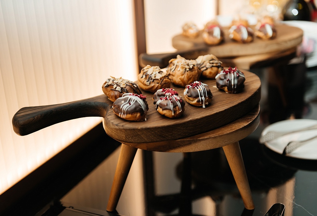 И легкий, почти несладкий десерт «Я и деревня». Оказывается, из бородинского хлеба можно приготовить крем. Сюрприз! Десерт идеально сочетается с игристым, но и с кофе тоже прекрасен. Впрочем, если вы сладкоежки, как я, загляните перед ужином на традиционный шоколадный час в 16:00. Вот тут просто раздолье любителям шоколада.