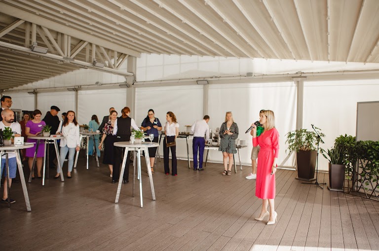 Несколько слов о программе. Она состояла из нескольких этапов. Встреча открылась красивым welcome на летней веранде ЦМТ с завтраком, представлением партнеров события и анонсом самых горячих новостей издания.