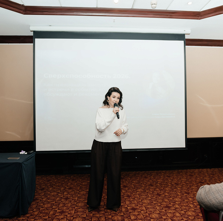Выступление Елены Решетниковой превратилось в полноценный практический тренинг на тему «Сверхспособность 2026. Как превращать выступления и встречи в события, которые обсуждают и рекомендуют». Главный тезис – в эпоху ИИ именно человеческие эмоции, доверие и энергия становятся решающим фактором. Коммуникация перестает быть «мягким» навыком и становится супертвердым профессиональным инструментом.