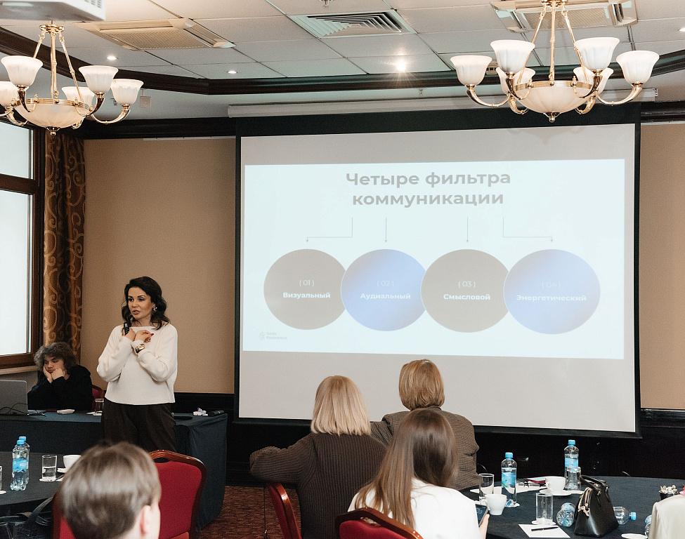 Елена предложила рассматривать общение через три координаты: энергия, отношения и задачи. Участники разбирали, как формируется первое впечатление, какую роль играют визуальные и аудиальные фильтры восприятия – от внешнего вида и зрительного контакта до тембра голоса, интонаций и пауз.