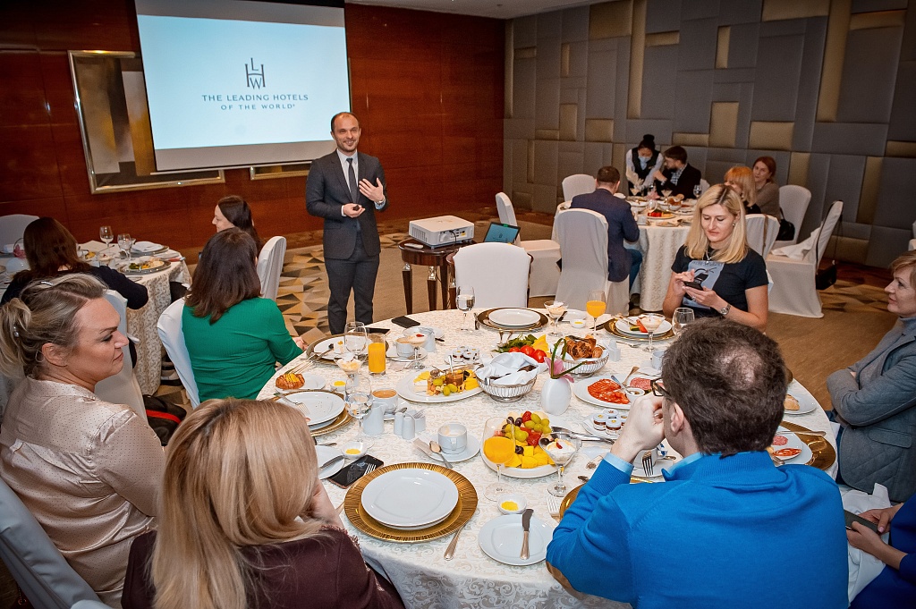 Это был незабываемый бизнес-завтрак. Во многом его исключительность обязана великолепному рассказчику, знатоку и эксперту индустрии, старшему региональному директору The Leading Hotels of the World в Восточной Европе, России, Украине, странах СНГ и Израиле Валерию Ишунькину. Сложно найти специалиста, более влюбленного в свое дело, чем Валерий. От него мы узнали о преимуществах, доступных для групп и индивидуальных путешественников, ознакомились с условиями бронирования и возможностями для корпоративных клиентов, а также получили компетентные ответы на вопросы о Leading Hotels, коих у нас оказалось на удивление много.