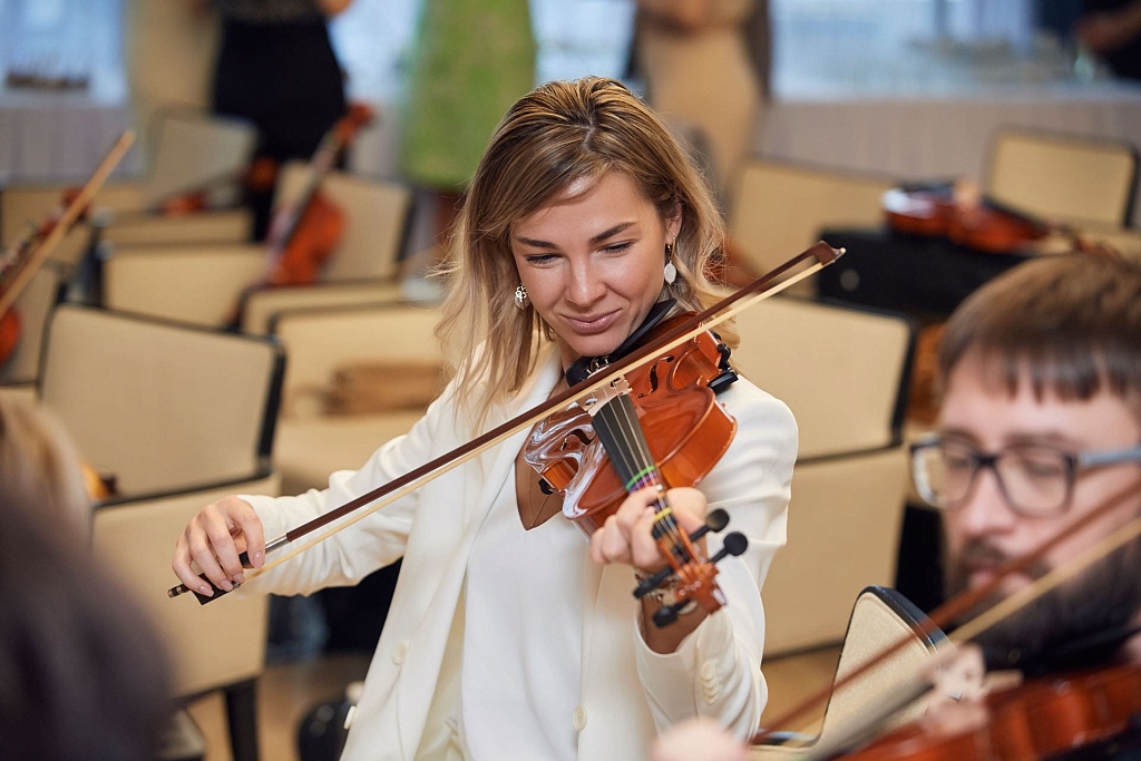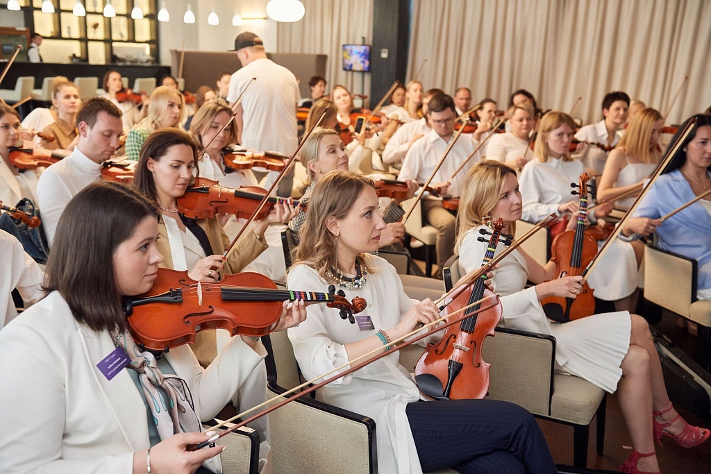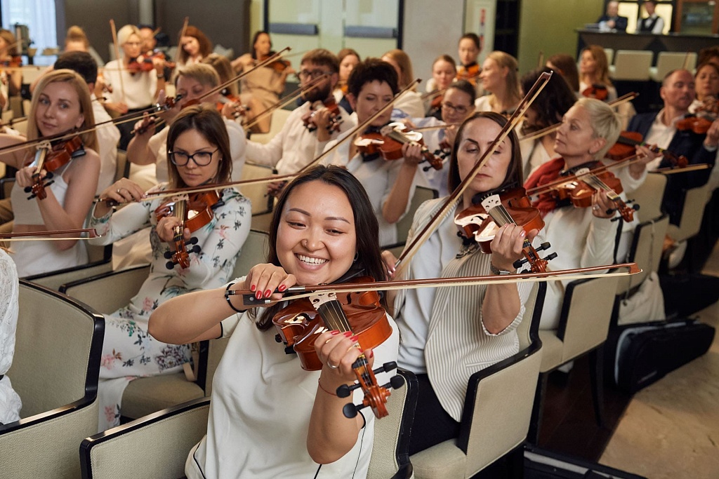 «КОНЦЕРТМЕЙСТЕР» – новый, но уже невероятно успешный проект, основанный истинным меломаном и гуру деловых мероприятий, Андреем Галичем. В чем успех проекта? В простой и выразительной идее – превратить любой коллектив от 25 до 300 человек в полноценный и сплоченный оркестр всего за 1,5 часа. Ведь только оркестр наглядно покажет, кто в коллективе фальшивит, не выкладывается на полную и не прислушивается к коллективу. Оркестр – это высшая форма командного взаимодействия и идеальная основа для сплочения рабочих групп и коллективов. Формат музыкального тимбилдинга подходит для мужчин и женщин любого возраста, и вы не прогадаете с форматом, ведь мало кто даже держал в руках скрипку, поэтому многие захотят испытать этот новый опыт.