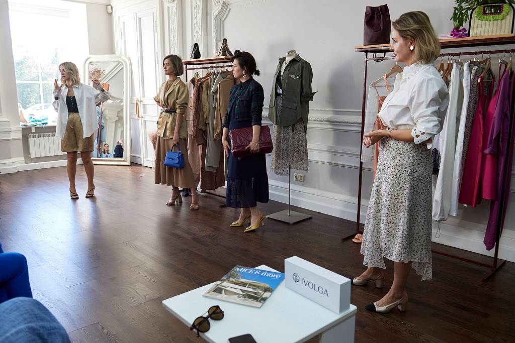 Есть такое выражение «анализируй это». Так вот, вместе с хозяйками вечера мы проанализировали десятки нюансов внешнего вида. Мы учились мыслить образами и использовать их. Мы рассматривали фигуру, силуэт, аксессуары, портретную зону – все, что наш глаз считывает с нового человека за первые 30 секунд знакомства. Мы постигали азы создания капсульного гардероба деловой женщины на все случаи жизни, как говорится. И даже занимались trendwhatching-ом, то есть исследованием трендов. Надо отметить, что нас восхитили не только наряды, которые продемонстрировали сотрудники модного дома, но и капсульная обувь, которую IVOLGA создает вместе с предприятием RESPECT. Этот бренд так и называется IVOLGA FOR RESPECT.
