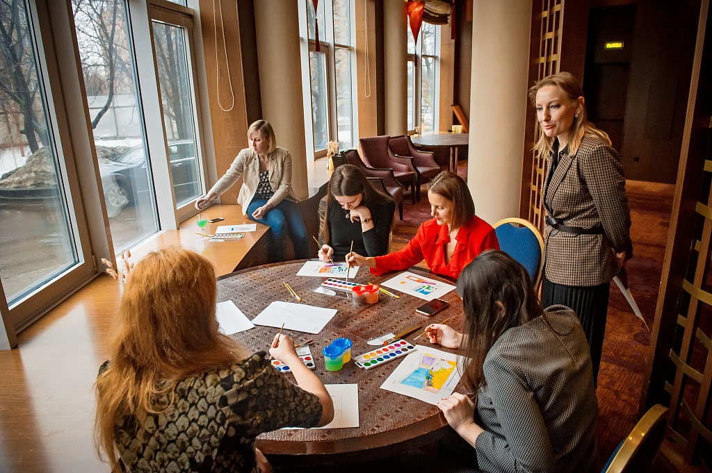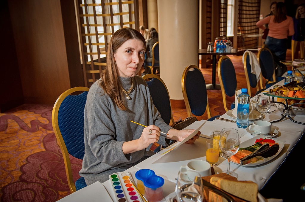 – Ритм жизни во многом зависит от современных технологий и многочисленных гаджетов, зависимость от которых в той или иной степени испытывают все. Уходя с головой в digital-мир, мы порой перестаем замечать многие важные вещи, забываем о себе, о живом общении с близкими. На автомате мы тратим драгоценное время на просмотр совершенно ненужной информации, которую можем и не вспомнить уже через пару минут. В этом плане арт-терапия буквально смещает нас в другое пространство, где есть место для себя и своих настоящих желаний. Где можно услышать свой внутренний голос, свои чувства и ярко проявить их на бумаге. В нашей истории арт-терапия выступает одним из действенных методов самовыражения, а значит, и саморазвития, – отметила в своем выступлении Анна Коваль. – Ну, а для людей бизнеса, много работающих головой, арт-терапия – это снятие напряжения, digital detox, а заодно и некий канал для новых вспышек вдохновения, без которых не обойтись в начинаниях.
