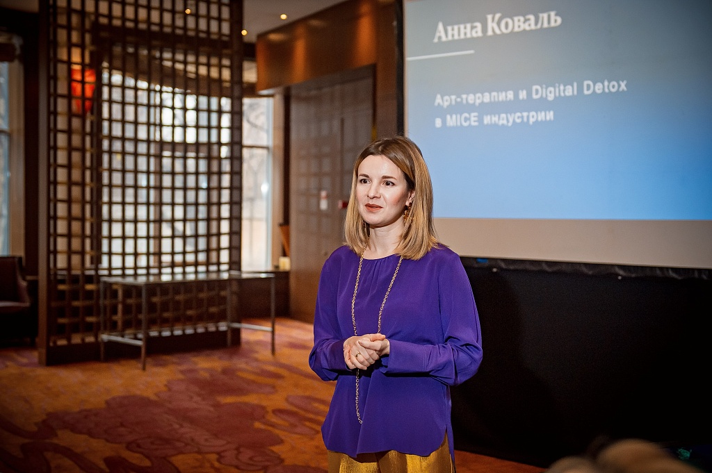 Во время творческой программы главный редактор и основатель журнала MICE&more Лина Москвина провела презентацию нового проекта ART&more. А возглавила этот проект современный художник и дизайнер интерьеров Анна Коваль. Она познакомила всех присутствующих с направлением «Арт-терапия», его основными техниками и задачами, а также поделилась, как арт-терапия способна сбалансировать на нашу жизнь и внутреннее равновесие.