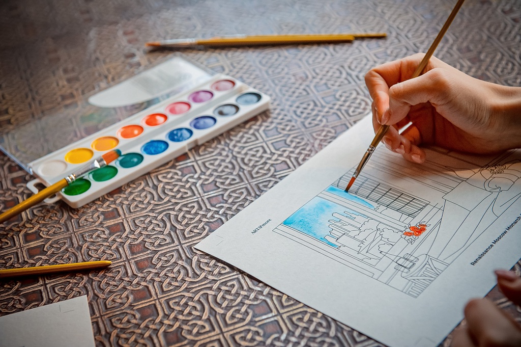 По завершении арт-завтрака и инспекции по отелю, гости, творчески вооружившись красками и кисточками, оставили свои впечатления на заранее подготовленных раскрасках интерьеров отеля. Собственно, этот процесс наглядно показал, как можно с кайфом и улыбкой на лице креативно переформатироваться всего за 15-20 минут. Конечно, погрузившись во внутренний мир фантазий и импровизации!