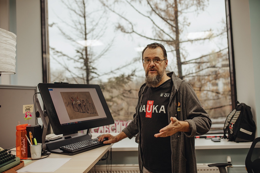 С нами беседовал художник-постановщик и режиссер Юрий Чайка-Пронин. Он прекрасный рассказчик с разнообразным творческим опытом. Особенно нас впечатлил его короткий мастер-класс по рисованию в компьютерной программе, причем в качестве ученика Юрий выбрал самого не рисующего участника нашей группы. Теперь мы точно посмотрим полнометражный фильм «Суворов: Великое путешествие», который вышел на экраны в мае 2022-го года – на этом проекте Юрий работал художником по персонажам. Мы увидели разные этапы создания фильма, поэтому очень хочется посмотреть результат.