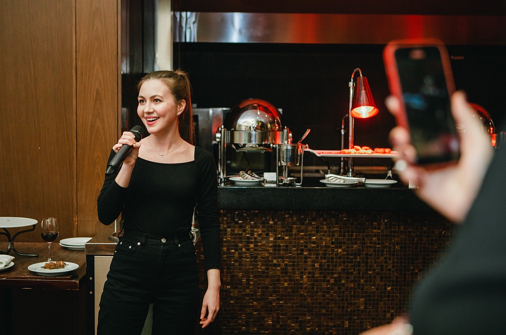 Вечер продолжился… Благодаря трансферу, отлично организованному компанией Z.Brothers, наша дружная компания уже через несколько минут после спектакля оказались в ресторане отеля «МонАрх» (именно в этом зале ровно год назад, буквально день в день, MICE&more делал арт-завтрак для своих подписчиков). Нас ждал вкусный фуршет и интереснейшее общение не только друг с другом, но и с создателями спектакля, с артистами, с прекрасной вокалисткой Лейлей Джусоевой, которая почти экспромтом сногсшибательно исполнила арии из опер. Можно сказать, что спектакль нас не отпускал… да мы и не стремились вернуться домой. Прекрасные мгновенья хотелось продлить.