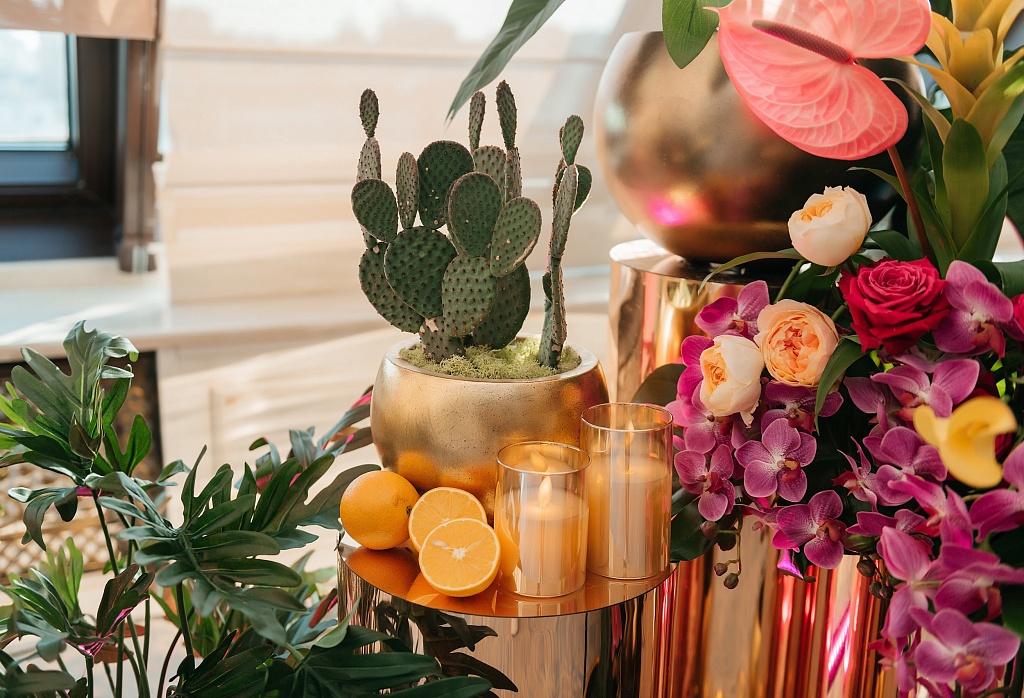 Летний праздник в отеле St. Regis Москва Никольская был ярким и запоминающимся. Входная зона была оформлена в тропическом стиле, с великолепными цветочными композициями, гостям раздавали изящные браслеты из цветов, фотозона с экзотическими цветами и попугаями придавали атмосфере особую живость. Гости могли насладиться игристыми винами, освежающими коктейлями и легкими закусками - все было продумано так, чтобы гости с первых шагов прониклись легким и летним настроением. Сотрудники отеля также поражали своими яркими нарядами, добавляя к общей красоте этого вечера свою изящность и стиль.