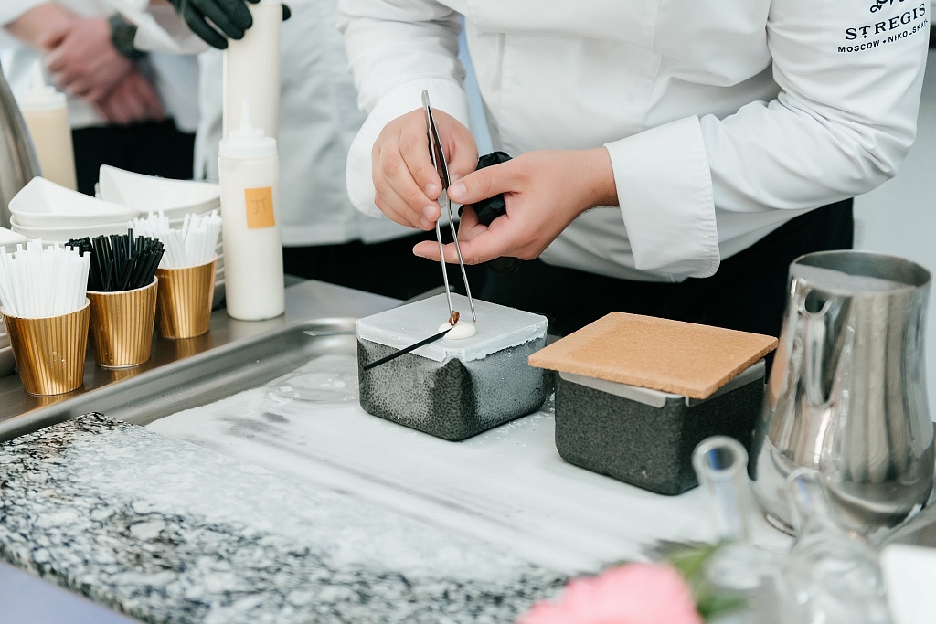 Открыла вечер Заместитель директора отдела продаж и маркетинга Карина Авагян , но без официальных речей и презентаций, поскольку этот вечер был задуман для того, чтобы гости смогли переключиться, расслабиться и хорошо отдохнуть, получая удовольствие от всего, что приготовил для них отель… а интересного было много. Ведущий Виталий Сидоров развлекал хорошо продуманными квестами, благодаря которым мы узнали много интересного об отеле и не только (в частности, вместе с инструктором-гусаром один из гостей овладел техникой сабража). Никита Бородин, создатель Агентства Алкогольных Интерактивов Think&Drink, привлекал гостей безалкогольным Арома-казино (очень рекомендуем этот формат для своих мероприятий). Певец Евгений Попов создавал отличный фон для разговоров на террасе и легких танцев. Но фишкой вечера несомненно стало Азотное шоу от шеф-повара отеля Алексея Савина и шефа банкетной кухни Алексея Григорьева. Благодаря их искусству мы смогли получить удовольствие от нежных фруктовых сорбетов, приготовленных на жидком азоте, и мороженого из горгонзолы и вяленых помидоров.