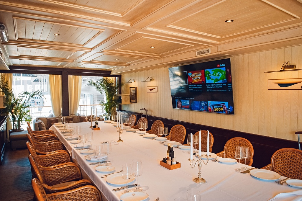 Наша живая встреча началась в 10 часов утра. Мы собрались на борту ресторана-яхты «Ласточка», где нас ждал безумно вкусный и элегантно сервированный завтрак от итальянского шеф-повара Доменико Филиппоне. Тут важно отметить, что Yacht Event специализируются на проведении корпоративных мероприятий на своих яхтах под ключ, что в свою очередь даёт вам целый спектр возможностей и преимуществ. Во-первых, вы берёте в полный фрахт яхту и можете по желанию организовать прогулки по Москва-реке. При этом, если вы не хотите отправляться в небольшой речной круиз, то это не проблема. Так как яхта швартуется в одном из самых живописных мест Москвы – на Лужнецкой набережной, то вашим гостям всё равно гарантированы шикарные виды на реку. Во-вторых, обе яхты компании Yacht Event «Чайка» и «Ласточка» оборудованы автономными залами вместимостью от 10 до 300 человек, что позволяет вам провести на борту корпоративные и частные мероприятия любого формата: свадьба, корпоративный банкет, празднование дня рождение, фуршет, презентация, бизнес-мероприятие. А ещё залы на яхтах легко трансформируются в открытую летнюю веранду, что является превосходным бонусом в хорошую погоду. В-третьих, так как Yacht Event сотрудничают с ведущими event и wedding-агентствами, а также профессиональными декораторами, журналами и телеканалами, у них можно заказать организацию мероприятия «под ключ». В-четвёртых, обе яхты оборудованы VIP-комнатами. На яхте «Ласточка» их 5, на яхте «Чайка» - 2. И это даёт вам дополнительные возможности для организации бизнес-встреч на борту. В-пятых, если ваше мероприятие проходит вечером, то вы можете украсить его ярким WOW-эффектом и запустить салют с набережной Москва-реки. Ну а дополнительным бонусом для всех участников и организаторов мероприятия является бесплатная парковка.