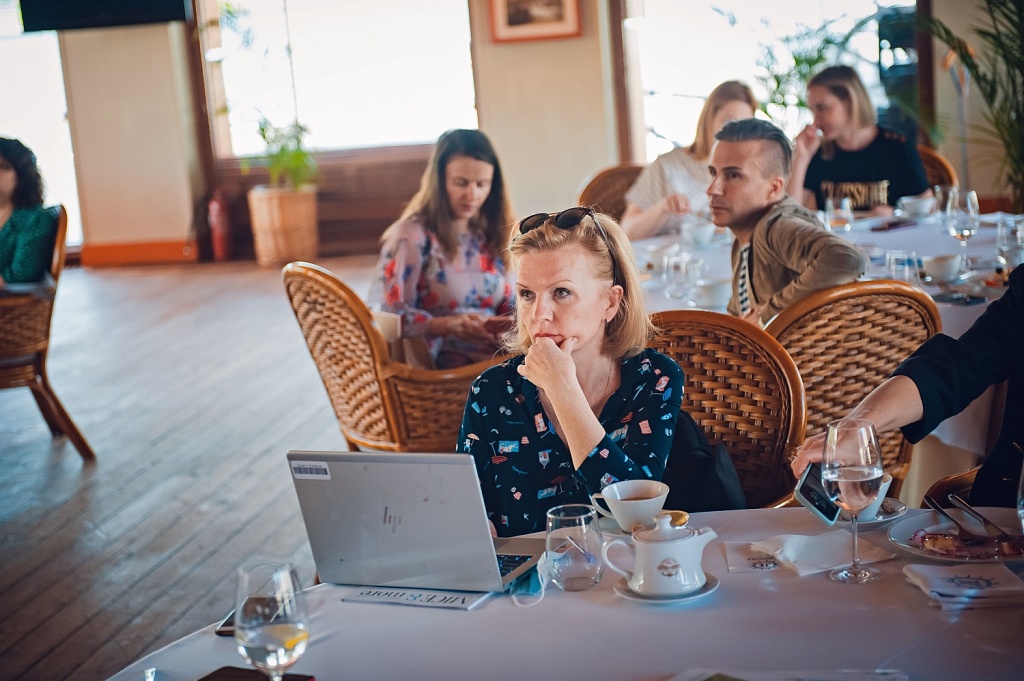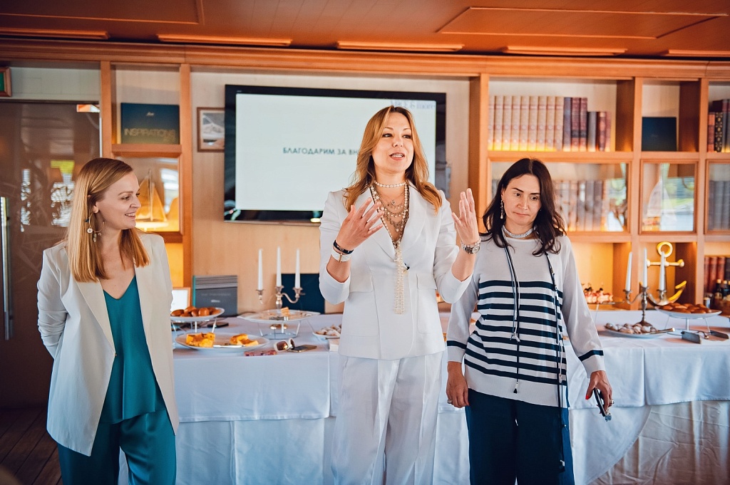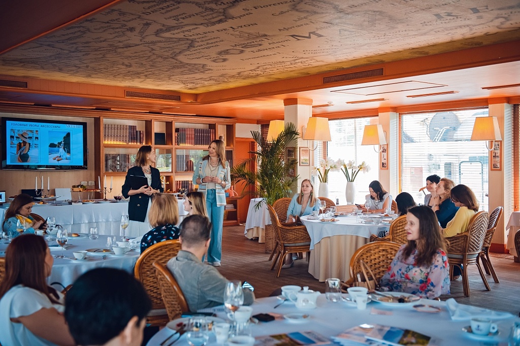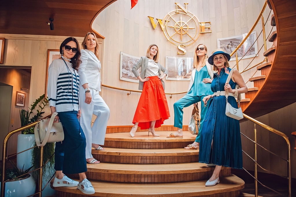 Но, вернёмся к нашему мероприятию. После вкусного завтрака и презентации компании Yacht Event у нас был запланирован мастер-класс от стилистов Оксаны Инатаевой и Ольги Лиоры, авторов нашей постоянной рубрики Fashional Geographic, и студии стиля на Новой Риге. Темой мастер-класса стал морской стиль в одежде и украшениях, что в полной мере соответствовало тону нашего мероприятия. Наши эксперты рассказали гостям обо всех тонкостях стиля, поделились профессиональными секретами и даже провели небольшой показ мод, в котором поучаствовали как наши авторы, так и читатели.