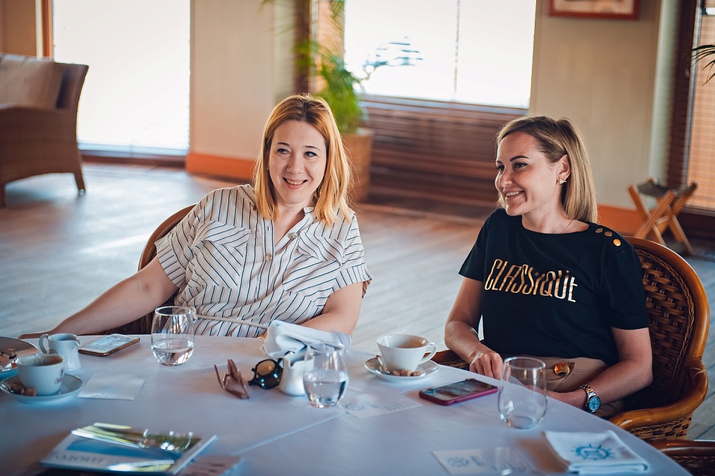 Формат мероприятия мы задумывали, как оффлайн встречу с читателями и авторами MICE&more. Нам хотелось создать для наших гостей настоящую атмосферу лета, моря, лёгкости и хорошего настроения. При этом нам было важно, чтобы мероприятие прошло на высшем уровне: красивые интерьеры, изысканная еда, насыщенная программа. И тут самое время рассказать о великолепном партнёре нашего мероприятия – Yacht Event, который не только предоставили одну из своих яхт для нашей встречи, но и организовал великолепный завтрак. Коллеги провели насыщенную презентацию своего проекта, которая закончилась экскурсией по яхте для наших гостей. Но давайте мы всё же расскажем вам всё по порядку.