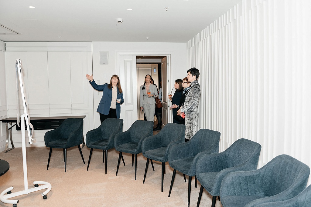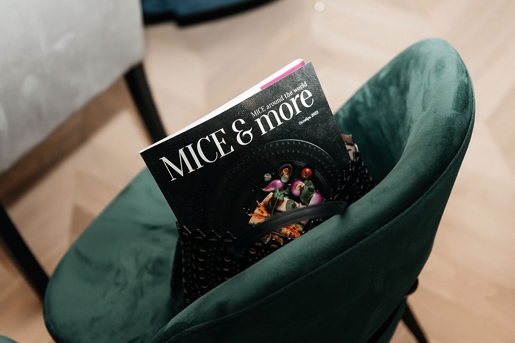 Всё началось в Cafe Imperial… Это дизайнерское пространство разделено на три зоны, что позволяет гостям проводить время с наибольшим комфортом и эффективностью. Центром притяжения является контактная барная стойка, где бармены радуют гостей своими фирменными коктейлями. Так и произошло на нашем вечере для подписчиков MICE&more. Бармен удивил гостей приветственным коктейлем и далее началась инспекция MICE возможностей отеля.