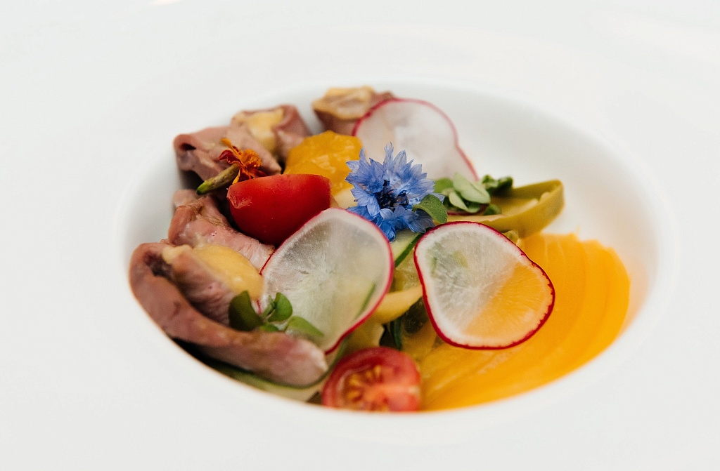 Сам фудтестинг в первую очередь удивил очень эстетичной сервировкой и подачей, было много цветов, это безумно красиво. Каждое блюдо отличилось особенным сочетанием вкусов: вместо привычной кислинки в пару к тартару из лосося прилагалась свежесть и сладость ароматной клубники, к традиционной утке экзотичный манго, а к томленой, как в русской печи, говядине неординарное пюре из сельдерея. Отдельным открытием для меня стали цукаты из шишечек. Это казалось невозможным, пока не попробовала!