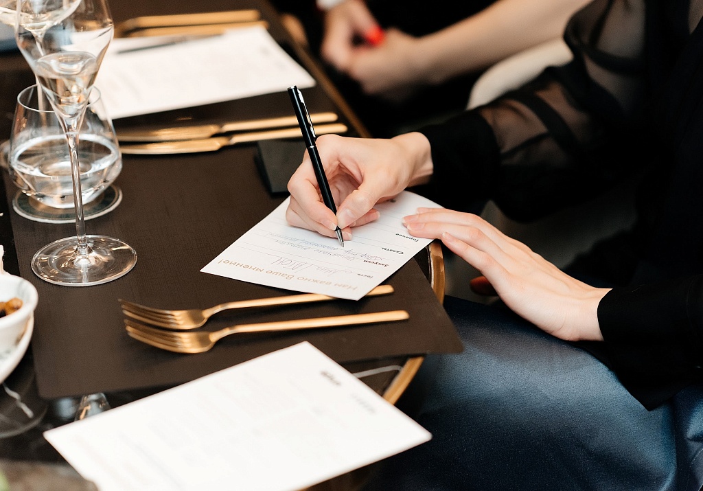 Меню ужина было построено по принципу «соедини вкусовые контрасты» или «удиви сочетанием». Каждый участник выступил в роли гастрономического эксперта: перед ним лежал бланк, который он заполнял по мере дегустации блюд и вин. Проанализировать свои впечатления помогали увлекательнейшие рассказы шеф-повара и сомелье, а также обмен мнениями с коллегами.
