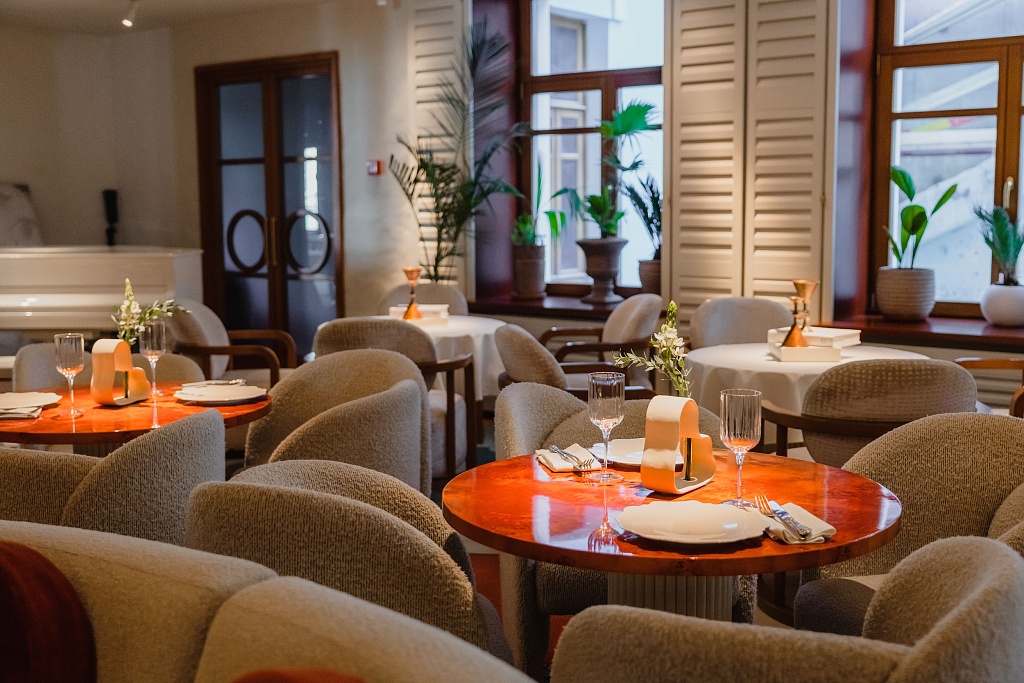 Первый этаж ресторана «Пафос» — это светлая таверна с открытой кухней и барной стойкой. Здесь приятно «непафосно» собираться с друзьями и семьями. Он рассчитан на 56 человек. Есть еще изолированные VIP-комнаты на 12 и 14 гостей. На втором этаже расположен большой греческий зал, напоминающий семейную виллу, который предлагают для корпоративных мероприятий (до 152 участников). Общая атмосфера заведения благородная и даже немного возвышенная, но при этом (как часто бывает в Греции) теплая и душевная.